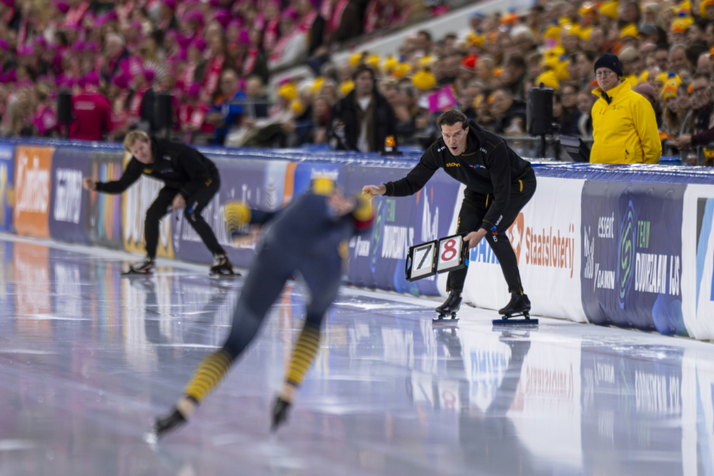Thialf was tot de laatste plaats bezet, ook tijdens de 3000 meter. Met een hal vol liefhebbers was de waardering voor een goede tijd groot. Dat zo’n sfeer kan stimuleren, bewezen Evelien en Leonie tijdens hun ijzersterke ritten. Beide reden hun snelste tijd ooit op een 3000 meter.