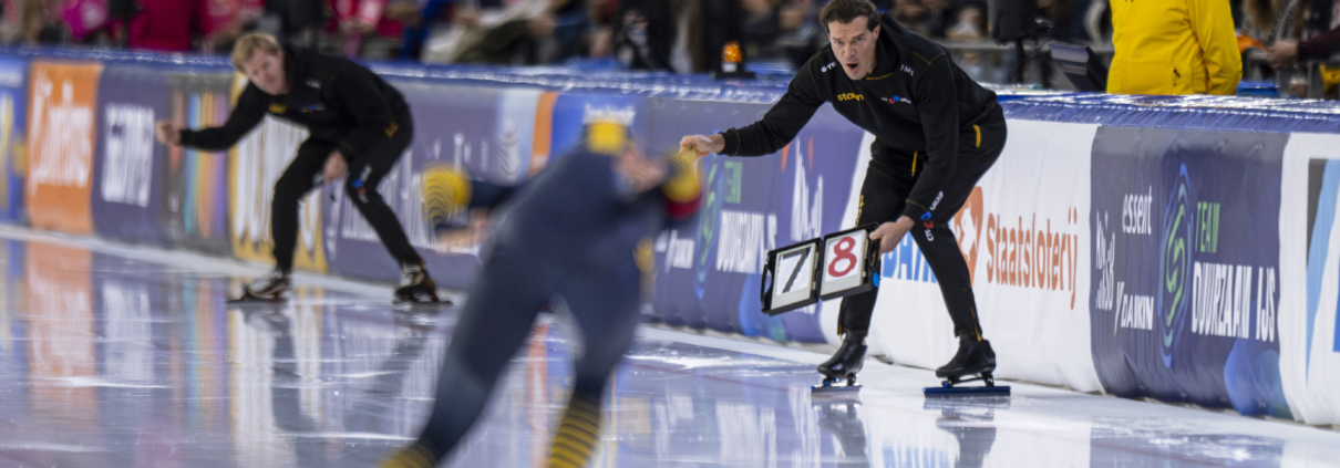 Onze mannen reden de 500 meter in een sfeervolle entourage. Je rit rijden in een kolkend Thialf, waar de spanning te snijden is, is een ervaring die je nooit meer vergeet. Deze ambiance is uniek en geeft iedereen een boost om het beste uit zichzelf te halen. Bij de mannen was Team Staan – CTS Group vertegenwoordigd door drie rijders op de korte afstanden. Rem de Hair kende een moeizame voorbereiding, maar was toch trots op zijn deelname. Sven Kemp haalde de spotlights doordat hij een losgetrokken spandoek over het hoofd zag. Met alle camera’s op je gericht kan het bijna niet anders dan dat dit een moment is dat de samenvattingen haalt. Wat hem echter meer zal bijblijven, is de rit die aan de struikelpartij voorafging. In die rit scherpte hij zijn persoonlijk beste tijd aan naar 35,099.Uitslag eerste omloop 500 meter